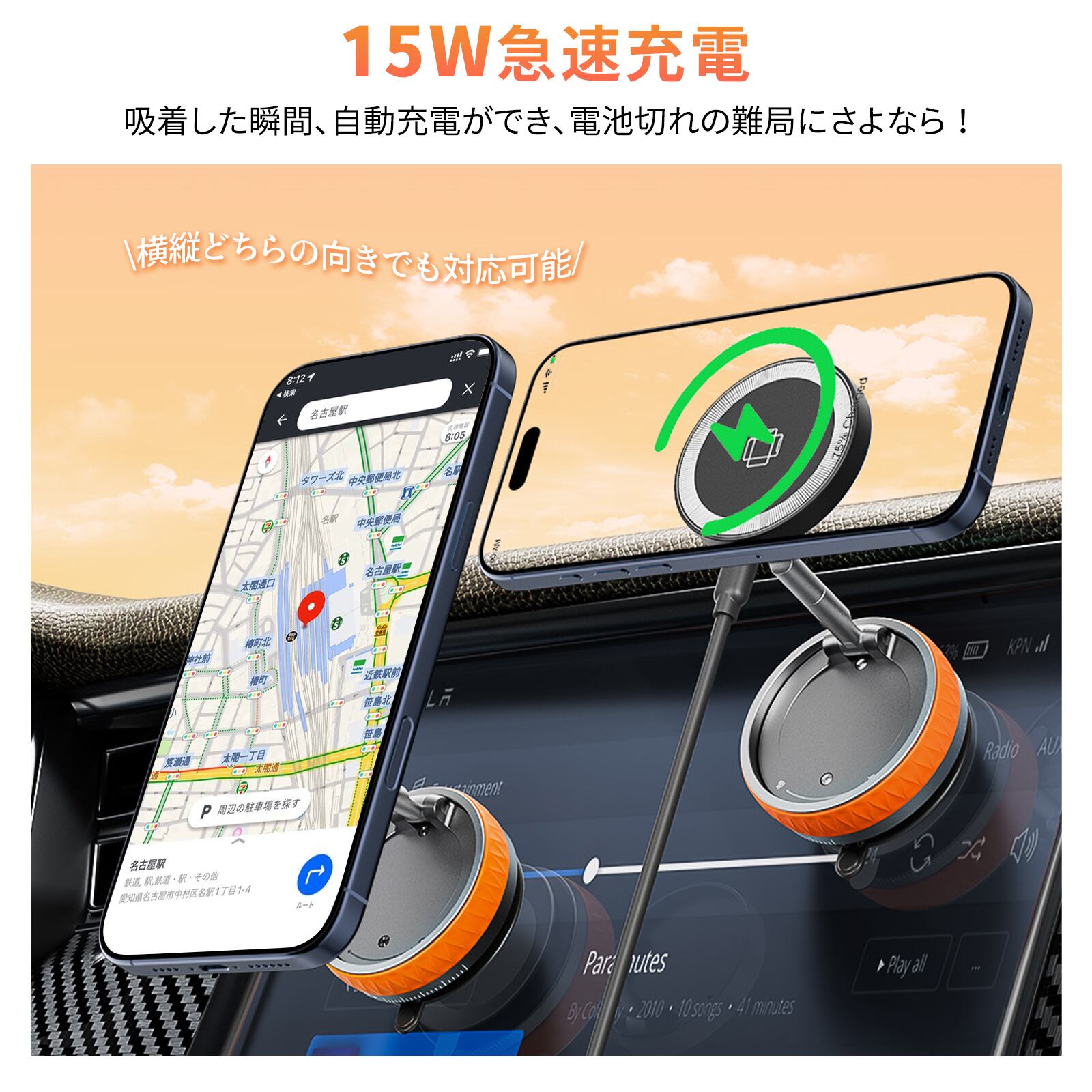 スマホホルダー 車載 スマホスタンド ノゲル吸着×真空吸盤 magsafe対応 車載ホルダーナ 15W急速充電 1秒吸着 360°回転 角度自由調整 片手操作 携帯ホルダー 卓上 携帯スタンド 360度回転 片手操作 iPhone Android全機種対応 スマホスタンド 車用 カー用品 超強磁力