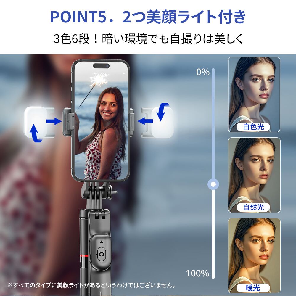 三脚 スマホスタンド リモコン付き 遠隔操作 美顔ライト付き コンパクト 三脚 高い 8段階伸縮 軽い セルフィースティック 三脚 スマホ三脚 スタビライザー付き Bluetoothリモコン 自撮り棒 アンドロイド iPhone/Android/カメラスタンド 軽量