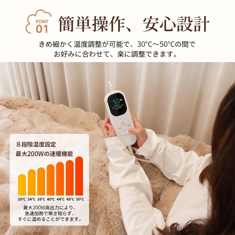 電気毛布 掛け敷き 190x130cm ラビットファー タイマー付き 8段階温度調節 ダニ退治 省エネ 電気毛布 掛け 敷き毛布 ひざ掛け ブランケット 洗える タイマー付 水洗い お歳暮 冬ギフト クリスマス プレゼント リビング