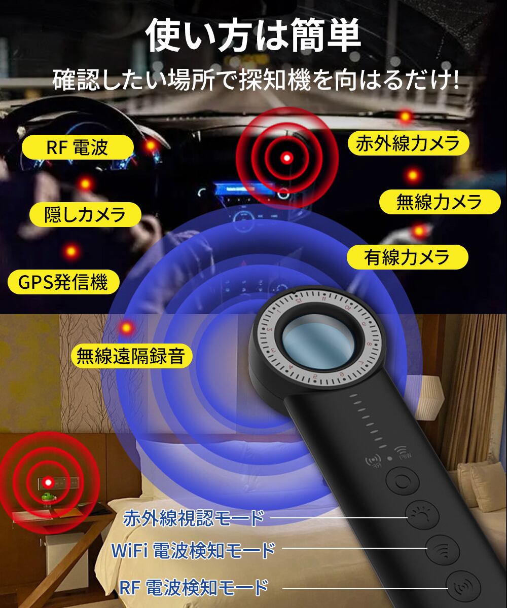 盗聴器 発見器 盗聴 盗撮 GPS 盗聴器発見器 盗撮器発見器 探知機 盗聴チェッカー GPS 発見機 検知器 隠しカメラ 小型カメラ 車 GPS追跡 充電式 部屋 寝室 女性護身用 防犯グッズ