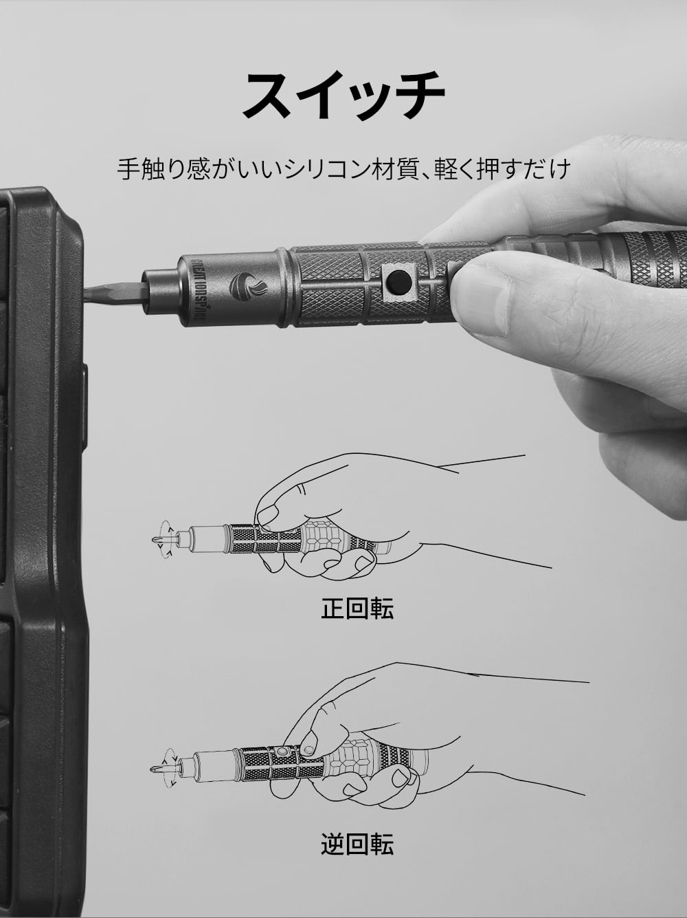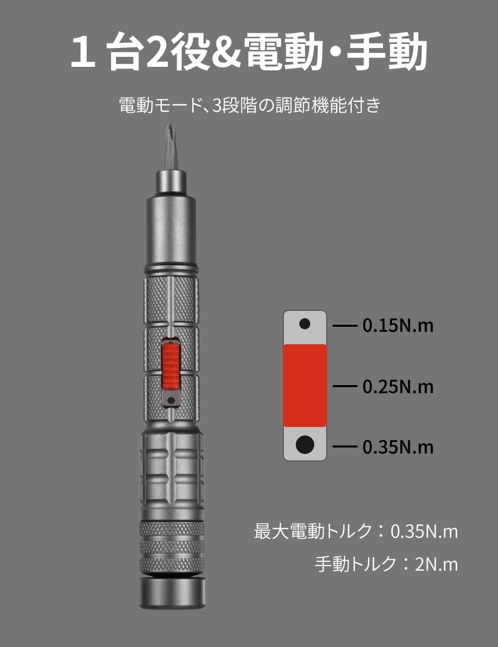 パッケージ内容豊富な超小型電動精密ドライバーセット、自動・手動と自由に切り替えられる、1台あると便利な充電式電動ドライバーです。 「使いやすいペン型」