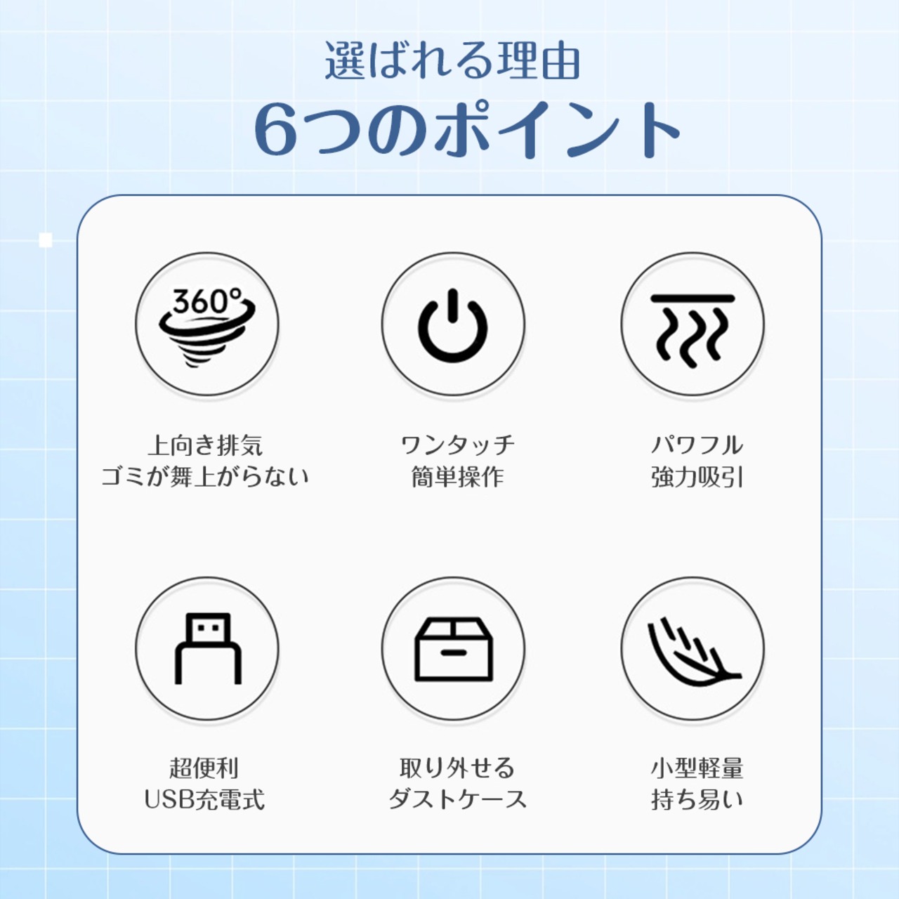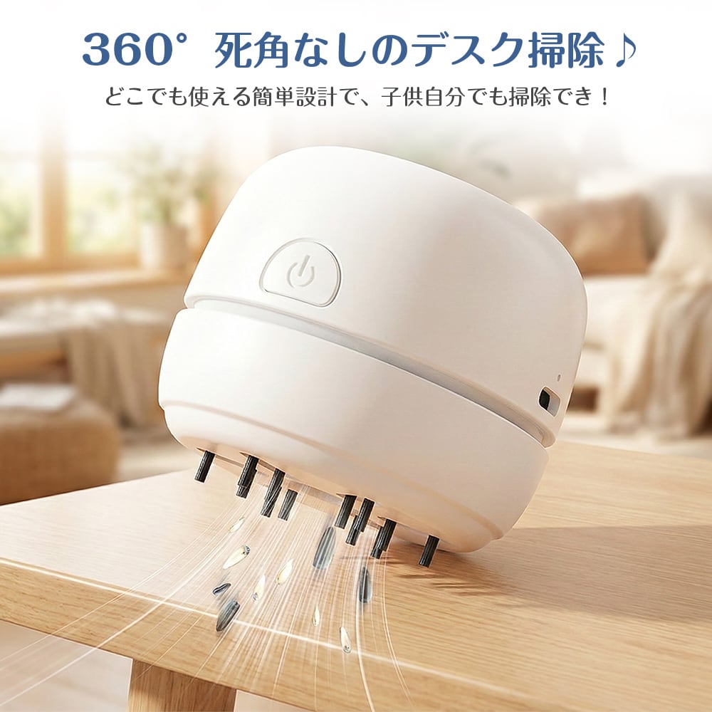【子供自分でもデスク掃除!】卓上クリーナー 充電式 USB 軽量 消しカスクリーナー 卓上掃除機 消しゴムクリーナー キーボードクリーナー デスククリーナー 机上クリーナー ミニ掃除機 静音 リビング 学習 プレゼント 入学 入園 仕事 オフィス ごみ捨て ゴミ掃除