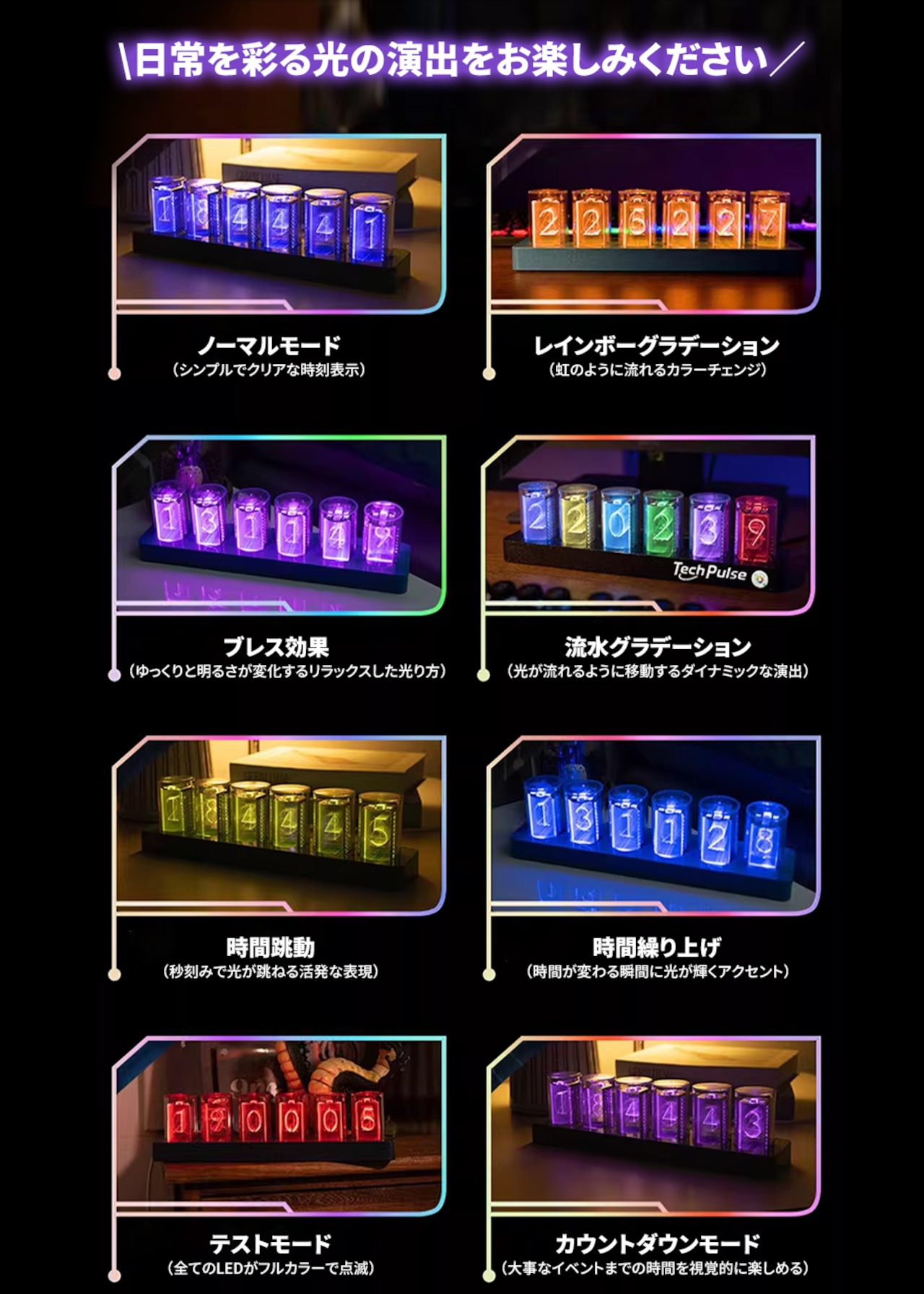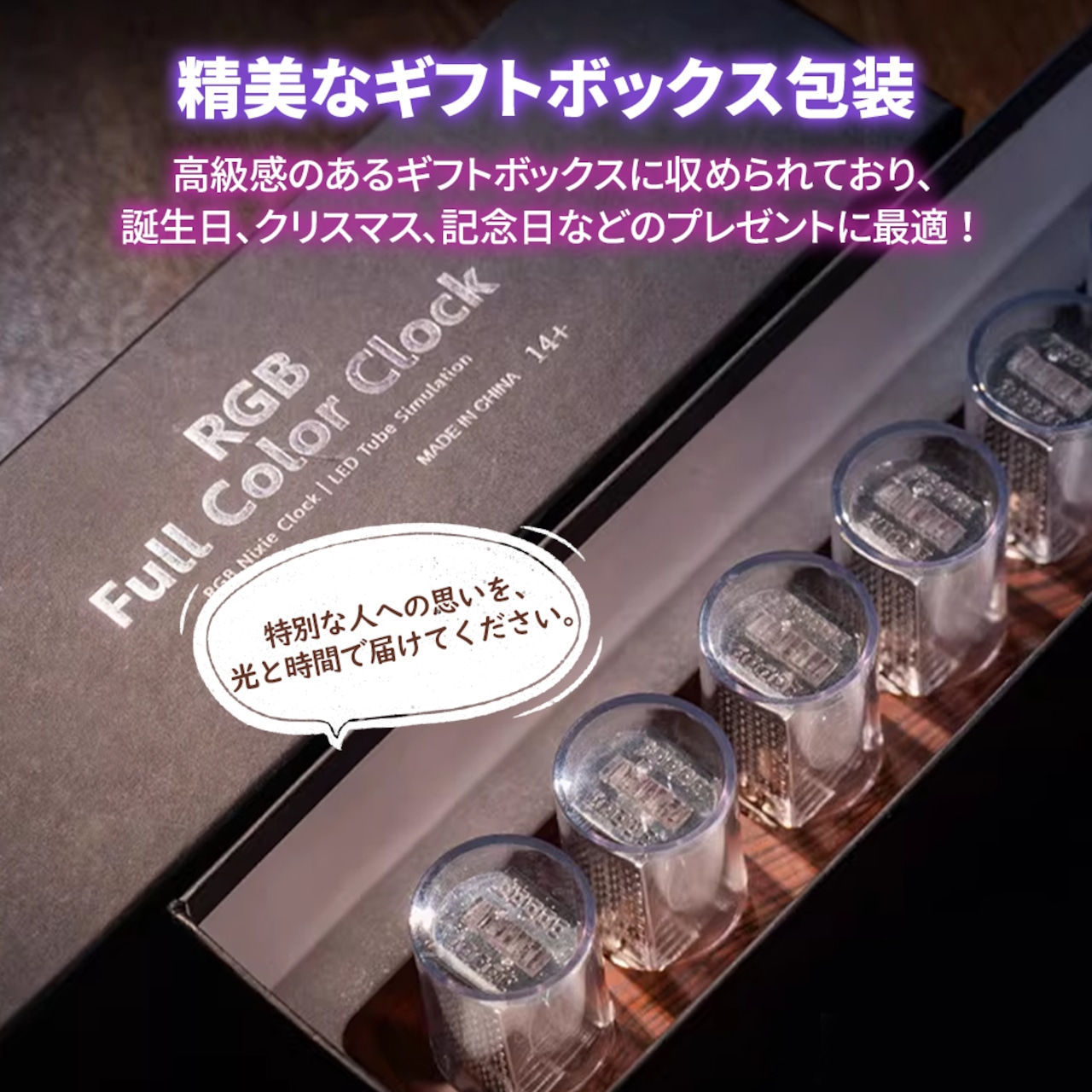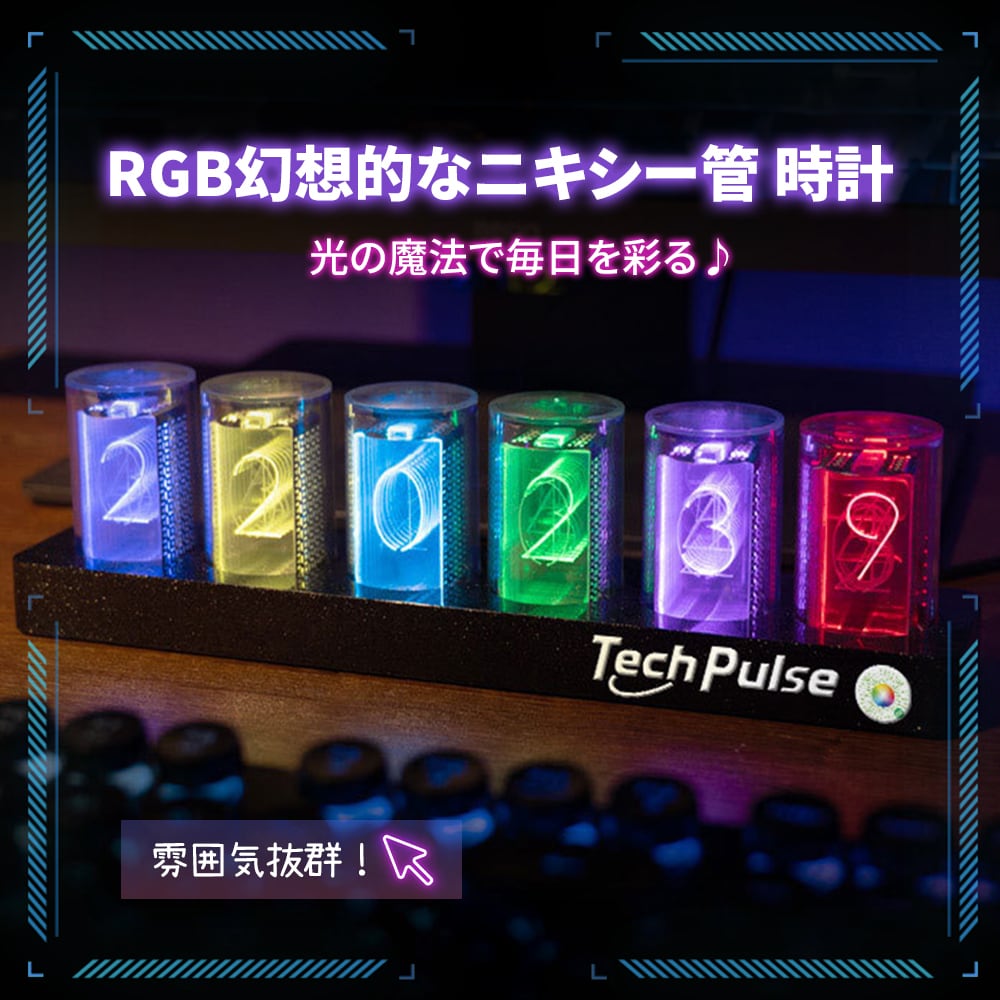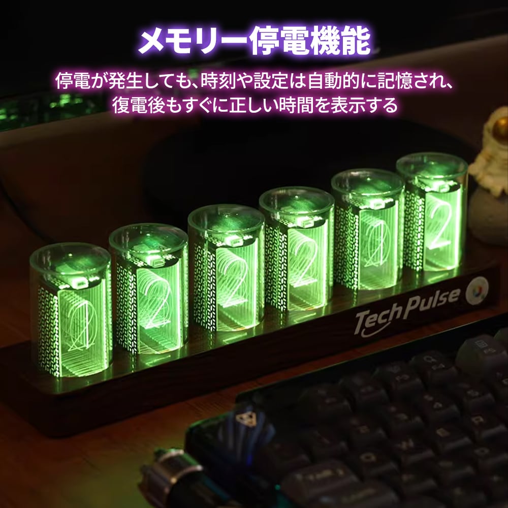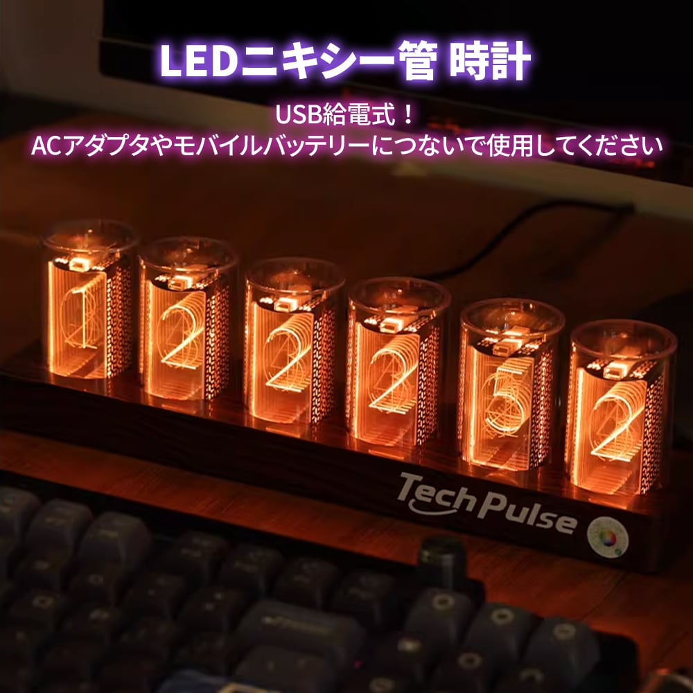 ニキシー管時計 LED ニキシー管風 デジタル時計 置き時計 卓上時計 ニキシー管風LED ニキシー管時計 Wi-Fi LED シュタゲ ダイバージェンスメーター 置時計 1600万色 ネオン 虹 レインボー レトロ メカニック 発光 ゲーム 部屋 おしゃれ インテリア バー カフェ 雑貨 USB給電