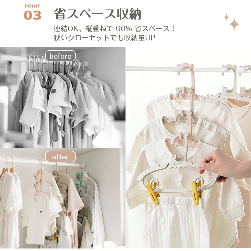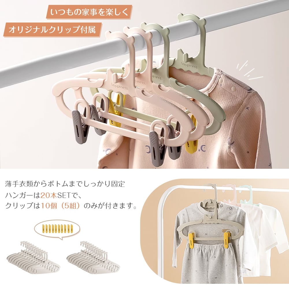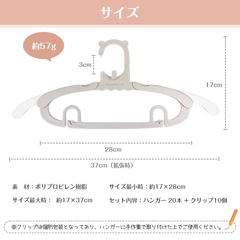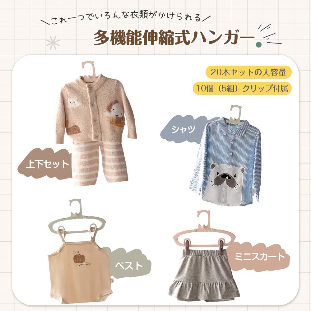 ベビーハンガー 20本セット 伸縮式 滑らない 3段階調整 キッズハンガー 子ども キッズ ハンガー 赤ちゃん 子供 ベビー 子ども服 ベビー服 物干し 洗濯 部屋干し 洗濯ハンガー 幼稚園 保育園 幼児 おしゃれ 出産祝い 出産準備