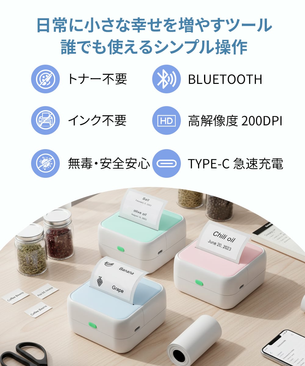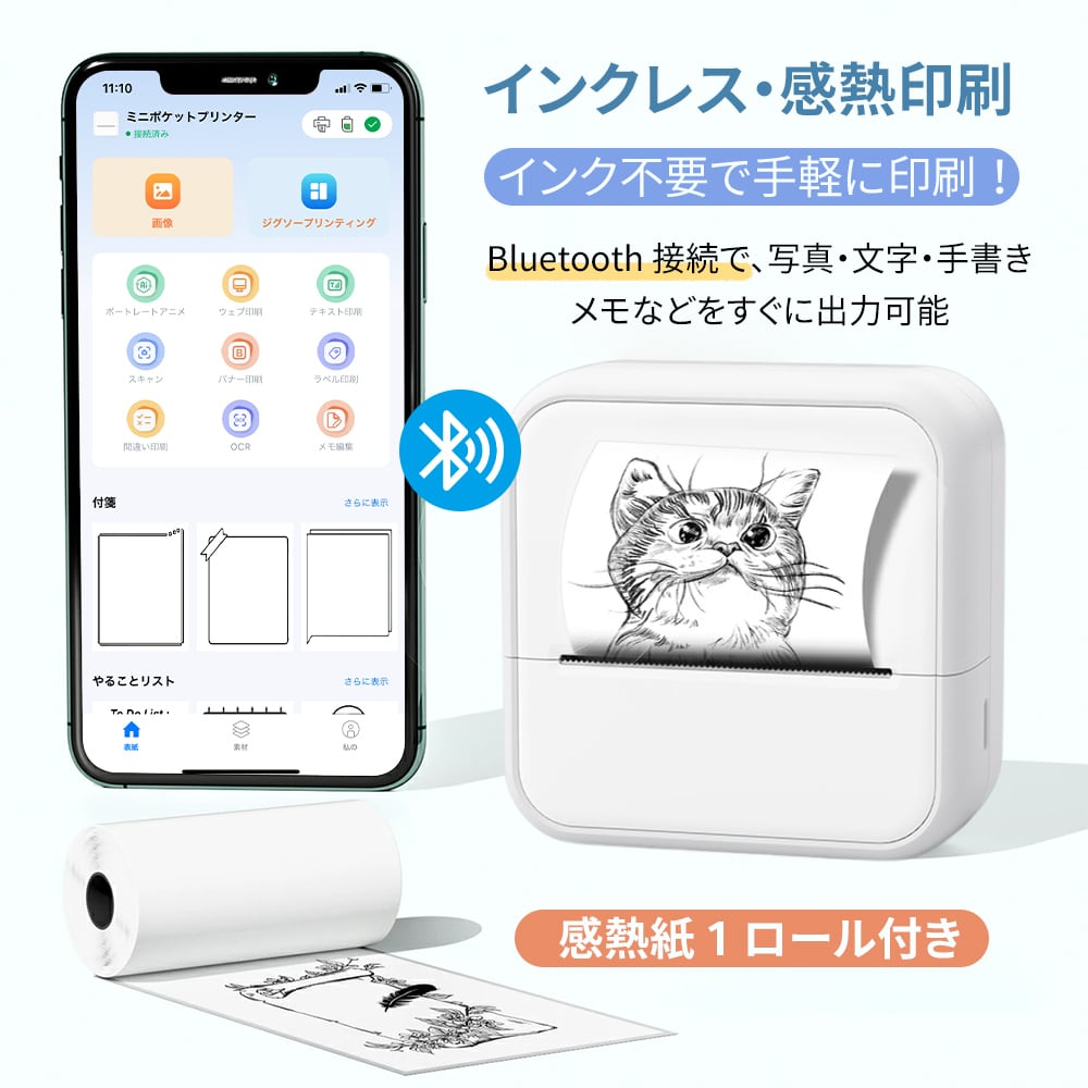 ミニプリンタースマホ対応 Phomemo サーマルプリンター ポータブルプリンター ポケットプリンター フォトプリンターミニ感熱 フォトプリンター Bluetooth接続 手帳作りをサポート