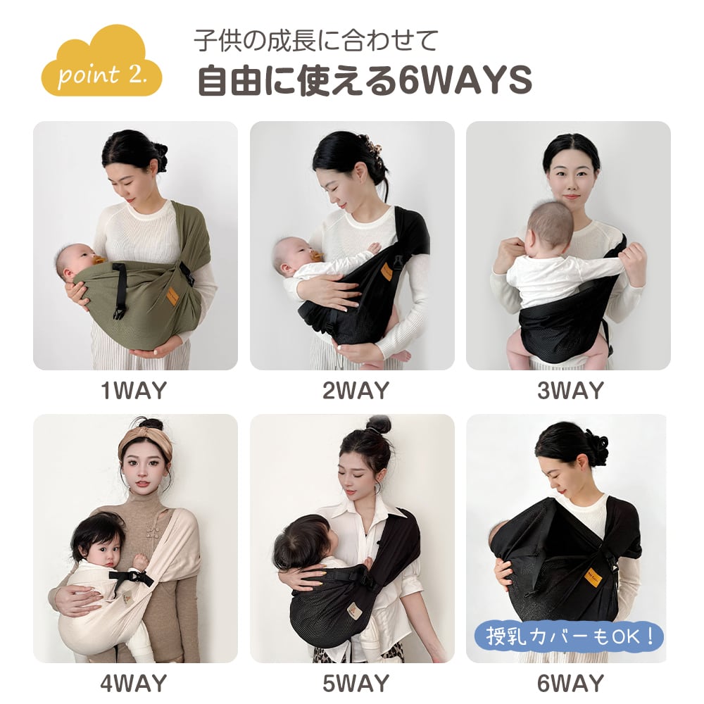 ベビースリング 抱っこ紐 新生児 スリング 横抱き 首すわり前 成長に合わせて使える6WAY 抱っこひも 抱っこ紐 人気 抱っこ紐 おしゃれ スリング 20kgまで 出産祝い 子供 パパママ 男女兼用 赤ちゃん 0~4歳