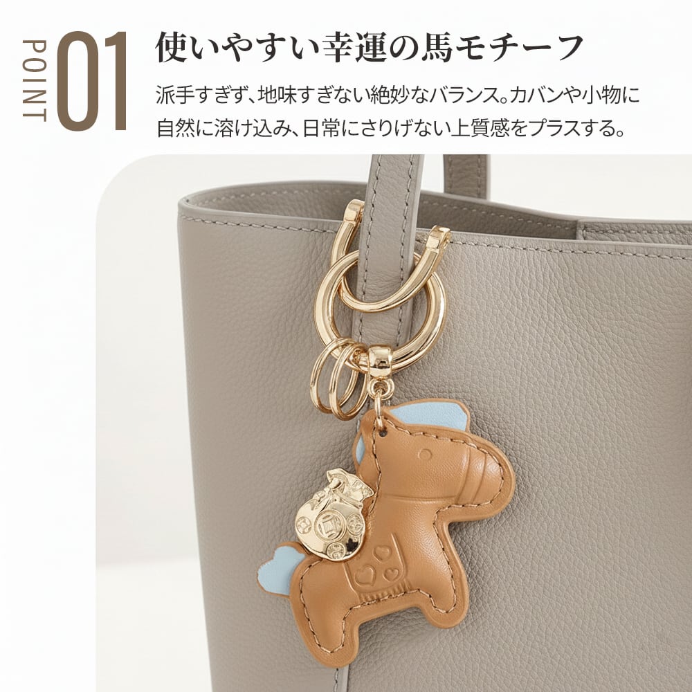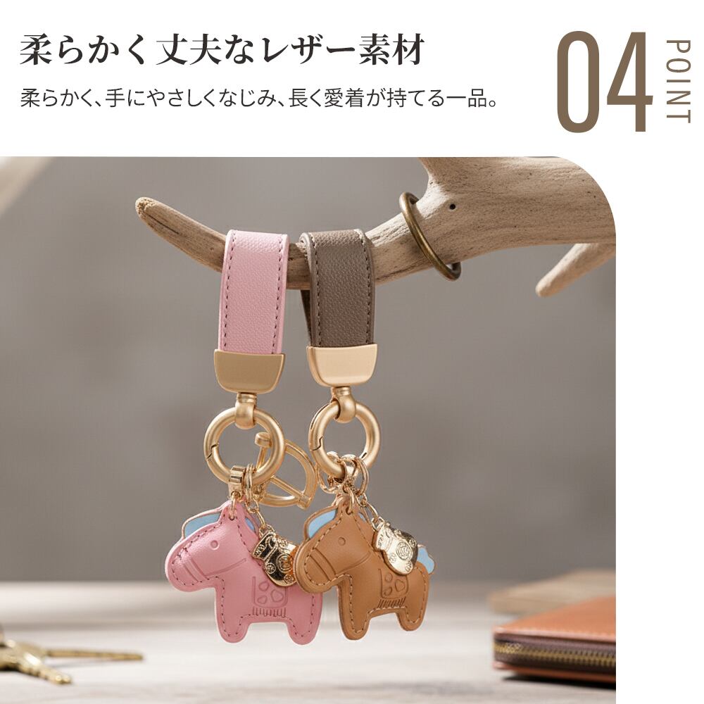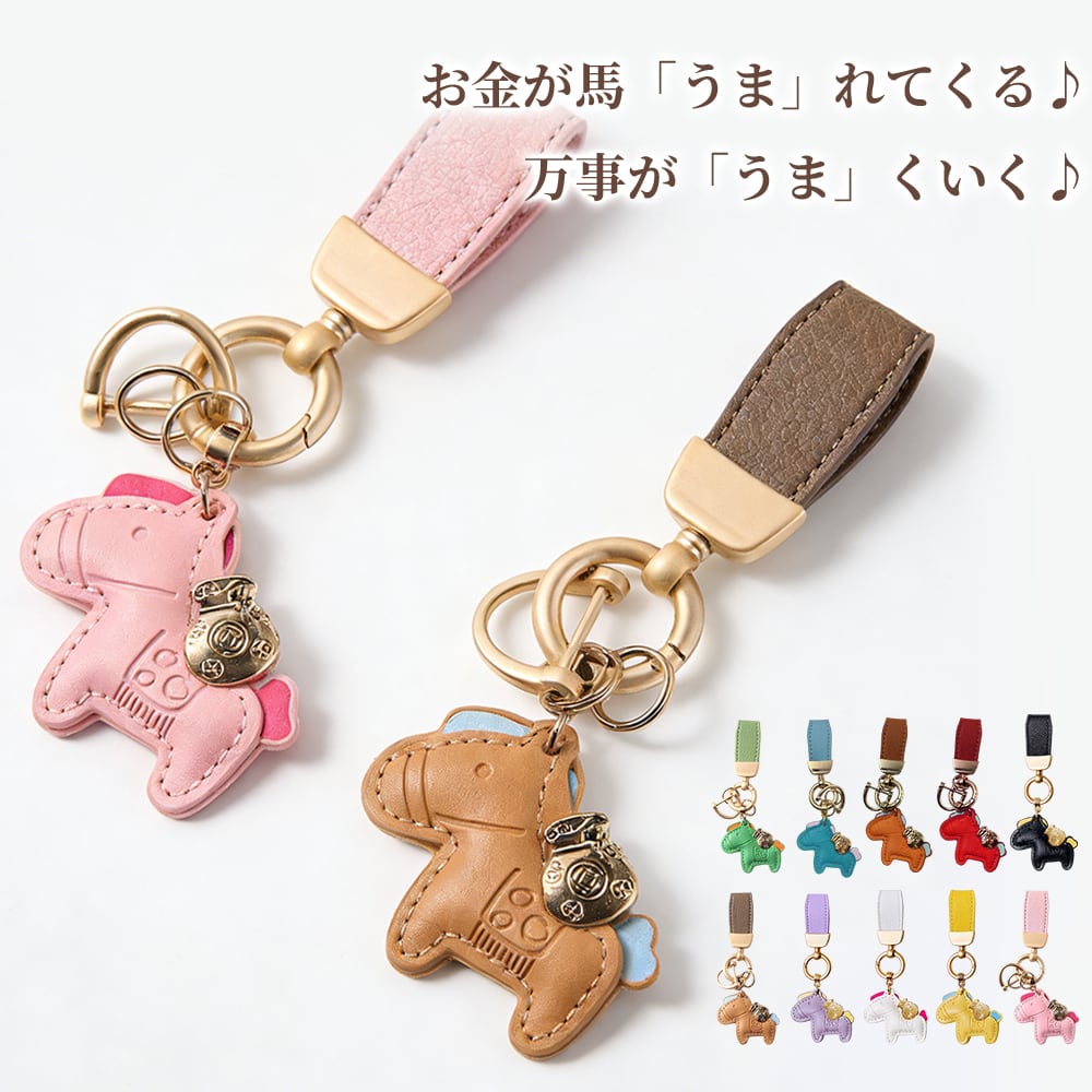 馬と蹄鉄のキーホルダー 縁起の良い馬と馬蹄 キーホルダー 皮革 バッグチャーム 飾り うま モチーフ アクセサリー 革小物 軽量 薄型 小型 おしゃれ かわいい レザーキーリング キーイング 車の鍵 かぎ ストラップ 財布 プレゼント午年贈り物 プレゼント