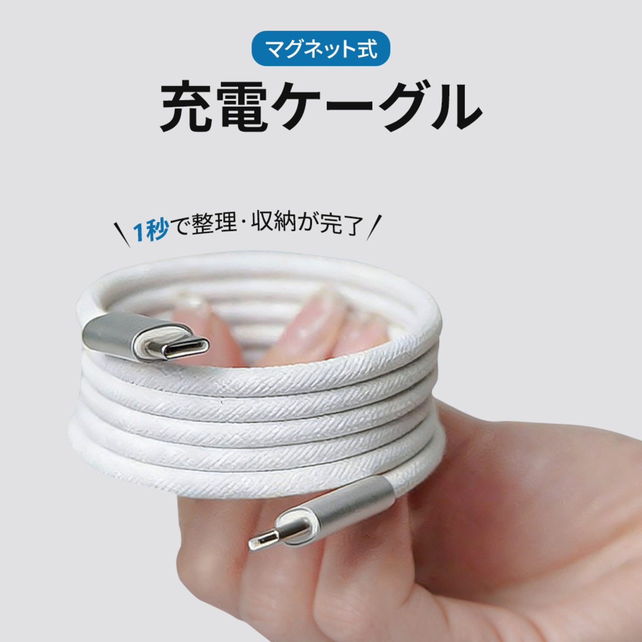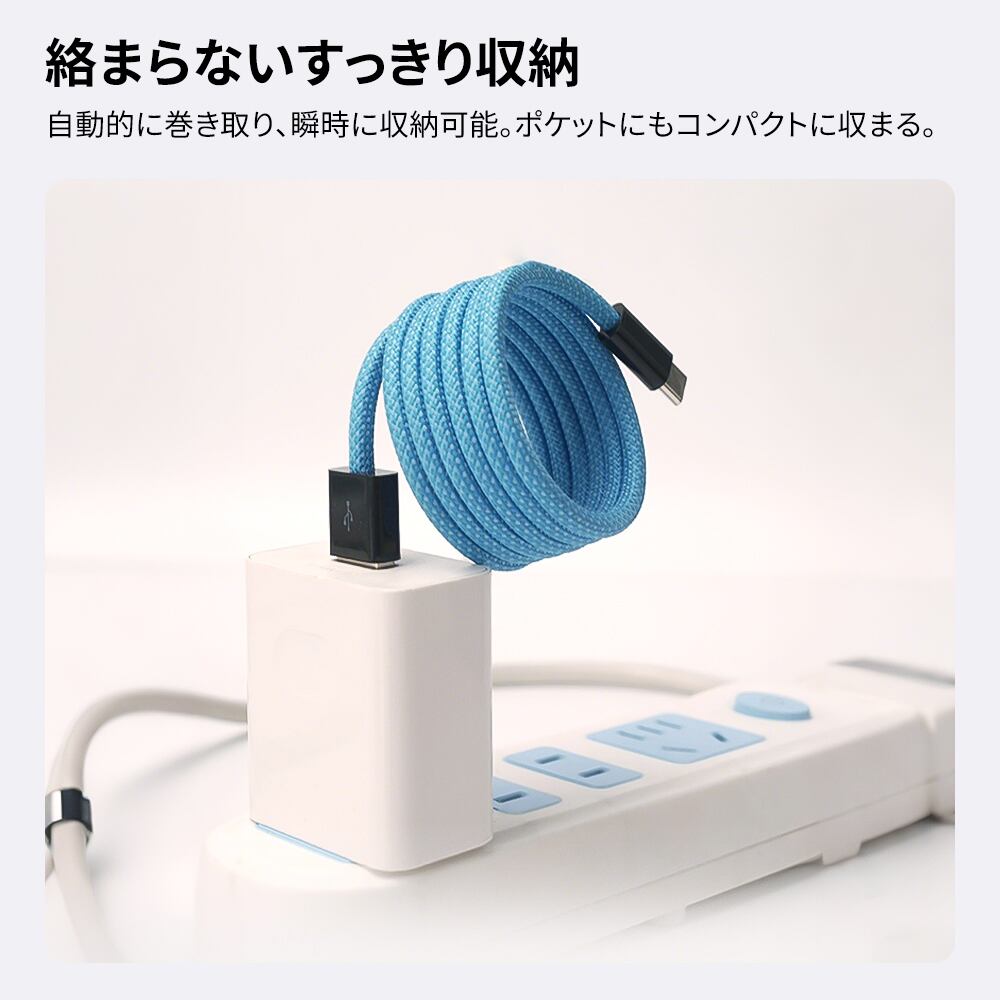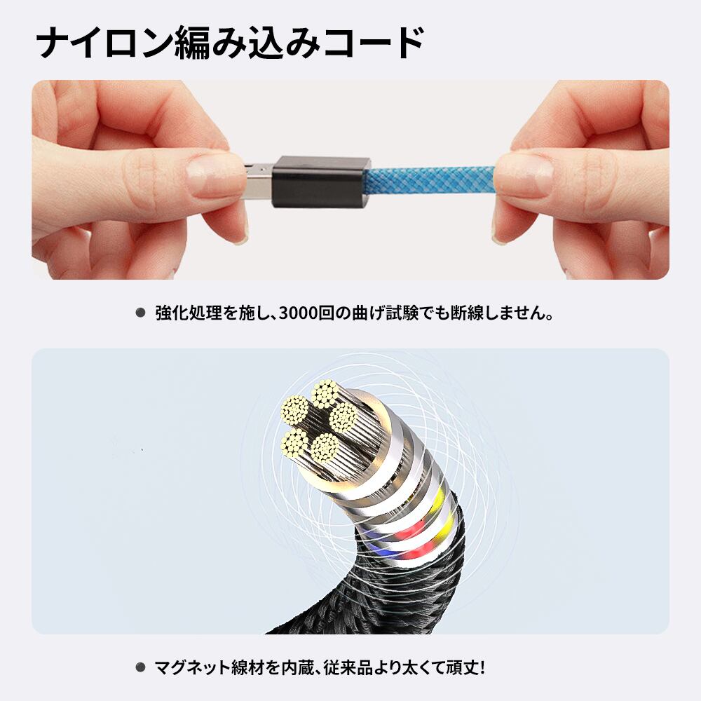 マグネット収納 充電ケーブル ightning ケーブル type-c ケーブル USB-A ケーブル スマホケーブル usb-c 充電コード 瞬間収納 タブレット ケーブル タイプc マグネットケーブル 1M / 1.5M / 2M 磁力でまとまる 形状記憶 磁石