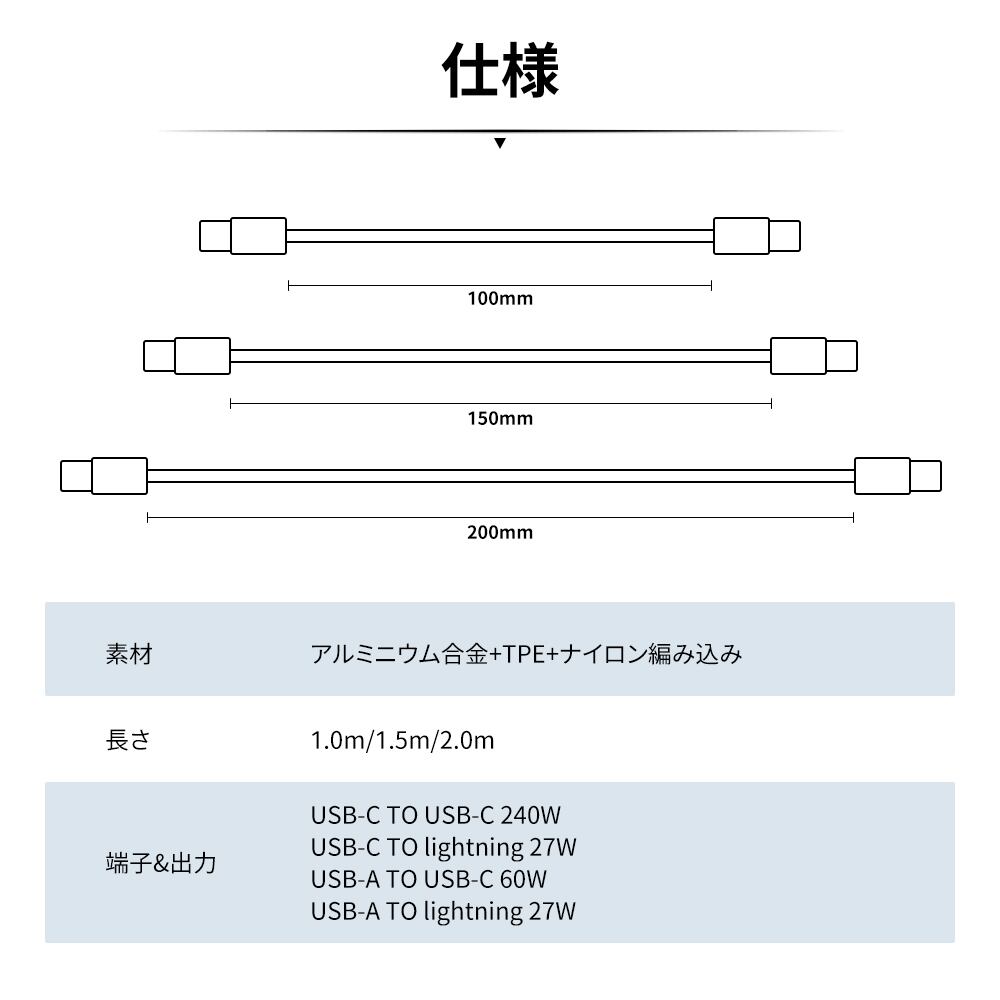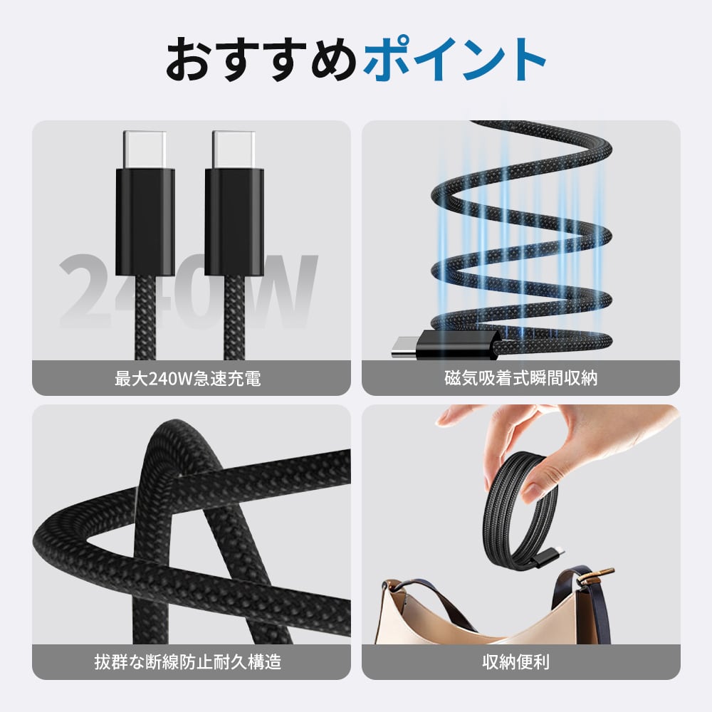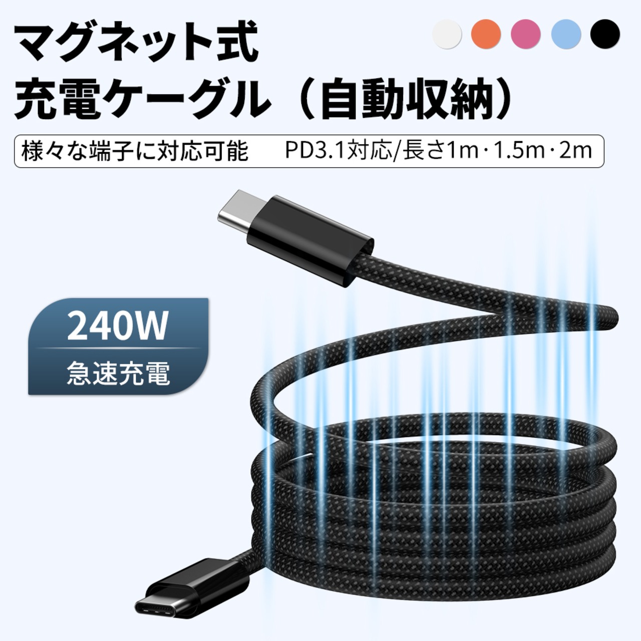 マグネット収納 充電ケーブル ightning ケーブル type-c ケーブル USB-A ケーブル スマホケーブル usb-c 充電コード 瞬間収納 タブレット ケーブル タイプc マグネットケーブル 1M / 1.5M / 2M 磁力でまとまる 形状記憶 磁石