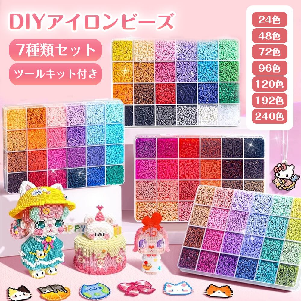 アイロンビーズ セット パーラービーズ アイロンビーズ キャラクター アイロンビーズ 図案 アイロンビーズ ケース アイロンビーズ 単色 プレート 2.6mm用 アクセサリーセット ミニ ビーズセット SNSで人気! 24色 48色 72色 96色 120色 192色 240色 補充ビーズ