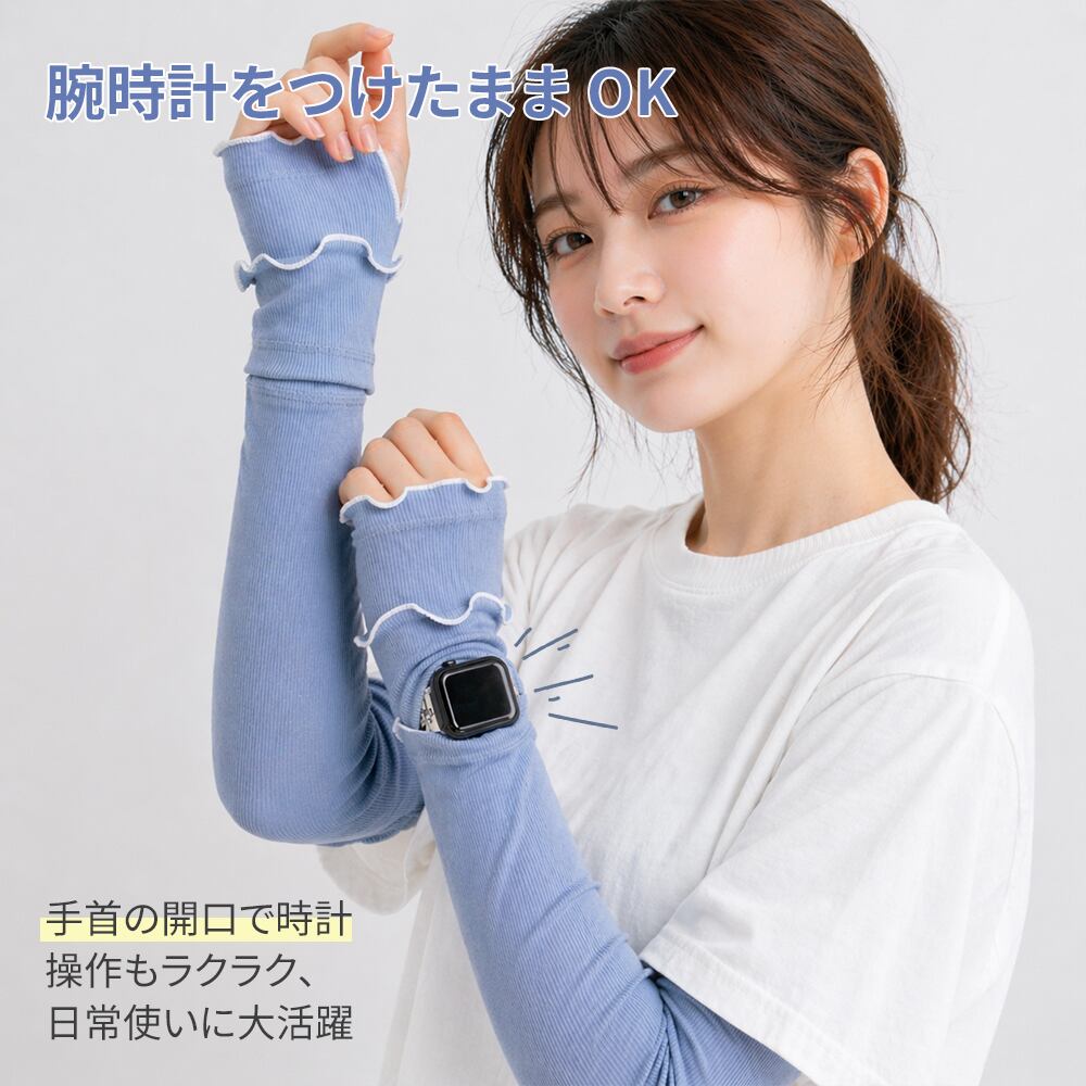 アームカバー レディース 冷感 UV カット ロング丈 52cm リブメロウ くすみカラー 指先まで保護 日焼け防止 紫外線対策 接触冷感 通気性抜群 おしゃれ かわいい 運転 アウトドア uv対策 夏 冷房対策 母の日