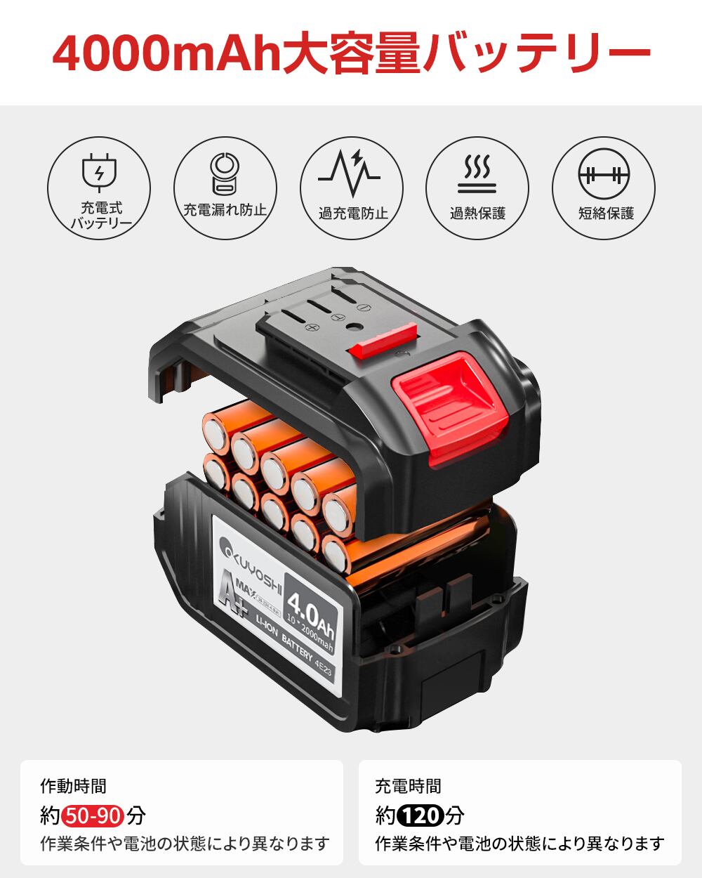 ●付属品:ブレード*8;4.0バッテリー;充電器*1、取扱説明書* 1、収納ケース*1。