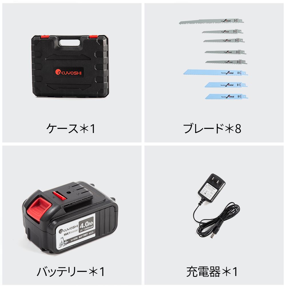 ●付属品:ブレード*8;4.0バッテリー;充電器*1、取扱説明書* 1、収納ケース*1。